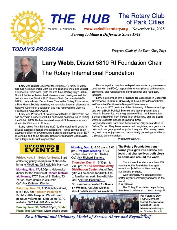 The Rotary Club of Park Cities' Communities Fund was originally sponsored in the 1960’s by the Rotary Club of Park Cities (“RCPC”) for the purpose of providing an enduring legal entity through which members and friends of the Rotary Club of Park Cities might make donations for the good of mankind and the Dallas community. The fund continues to this day to consider internal and external grant requests submitted on the RCPC Foundation online grant portal found on the club website.
