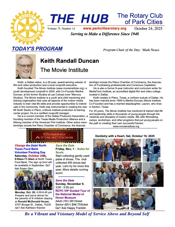 The Rotary Club of Park Cities' Communities Fund was originally sponsored in the 1960’s by the Rotary Club of Park Cities (“RCPC”) for the purpose of providing an enduring legal entity through which members and friends of the Rotary Club of Park Cities might make donations for the good of mankind and the Dallas community. The fund continues to this day to consider internal and external grant requests submitted on the RCPC Foundation online grant portal found on the club website.