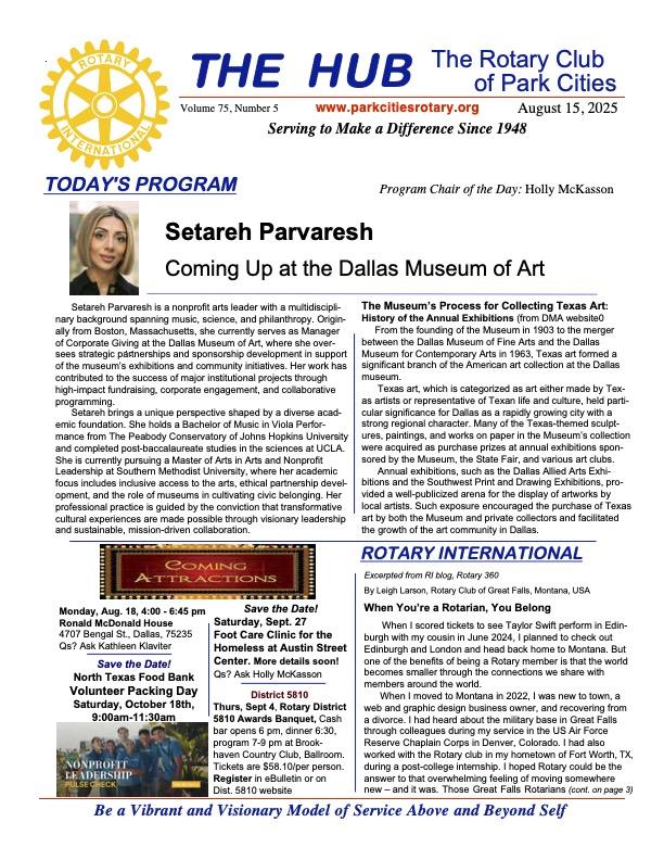 The Rotary Club of Park Cities' Communities Fund was originally sponsored in the 1960’s by the Rotary Club of Park Cities (“RCPC”) for the purpose of providing an enduring legal entity through which members and friends of the Rotary Club of Park Cities might make donations for the good of mankind and the Dallas community. The fund continues to this day to consider internal and external grant requests submitted on the RCPC Foundation online grant portal found on the club website.