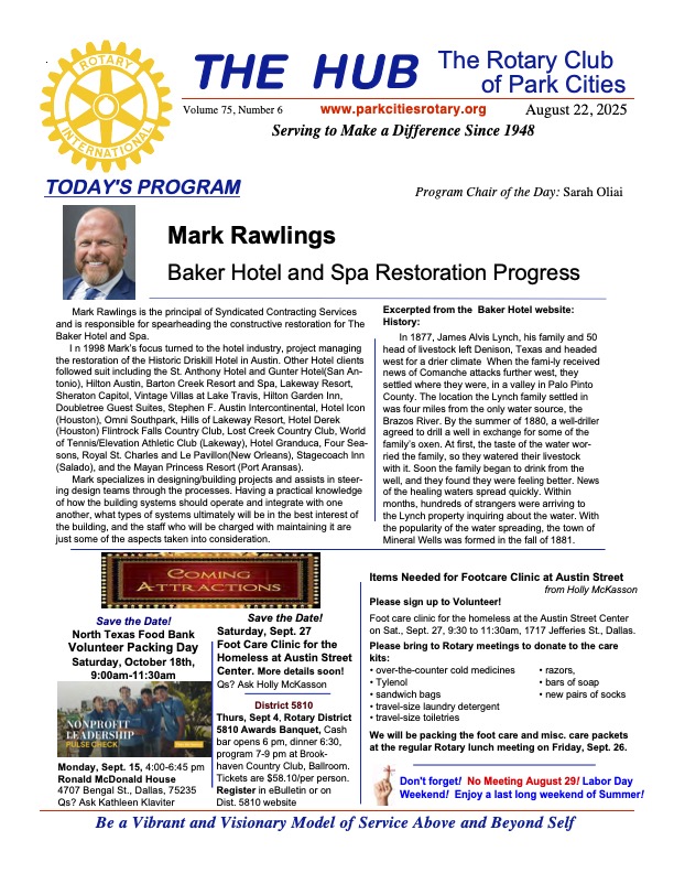 The Rotary Club of Park Cities' Communities Fund was originally sponsored in the 1960’s by the Rotary Club of Park Cities (“RCPC”) for the purpose of providing an enduring legal entity through which members and friends of the Rotary Club of Park Cities might make donations for the good of mankind and the Dallas community. The fund continues to this day to consider internal and external grant requests submitted on the RCPC Foundation online grant portal found on the club website.