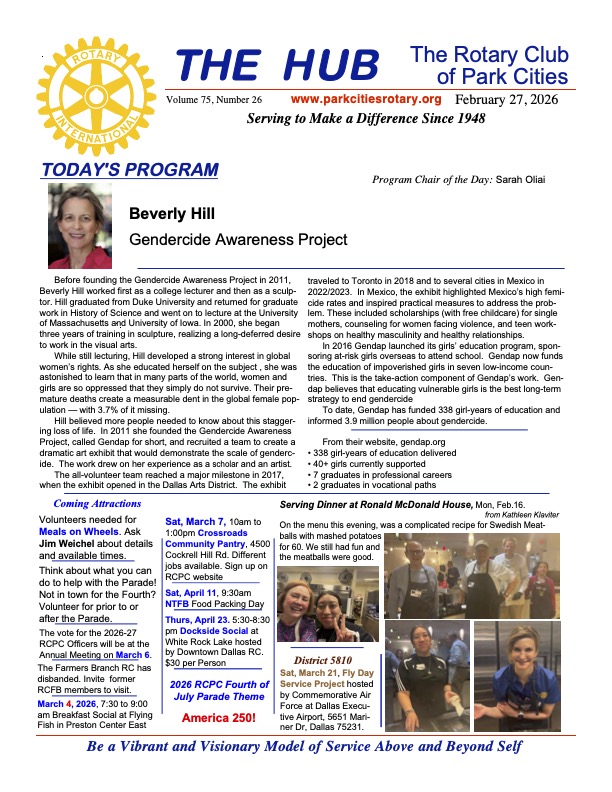 •The Farmers Branch Rotary Club has disbanded. Invite former members to join RCPC!