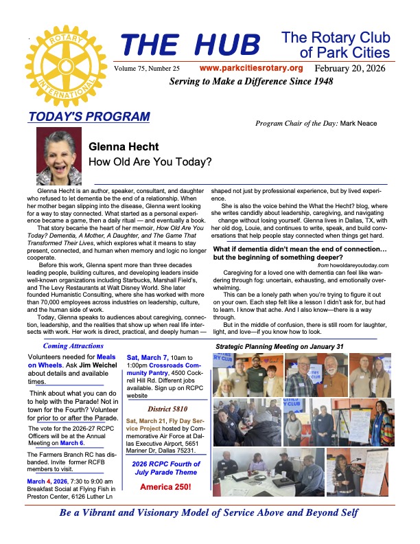 •The Famers Branch Rotary Club has disbanded. Invite former members to join RCPC!
